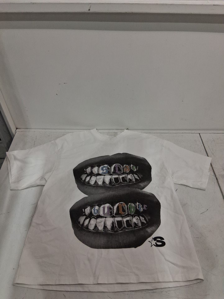 There is one faint scuff mark/stain on the collar of the shirt due to the shirt being shipped unpackaged. It should easily come out after a wash.