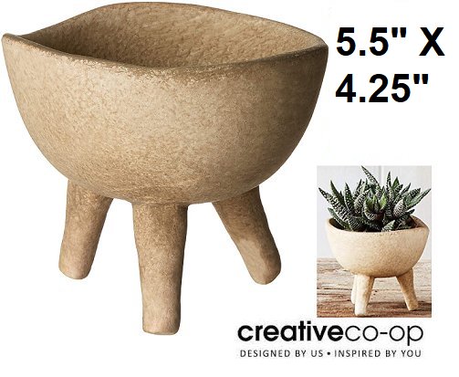 CREATIVE CO-OP SMALL TERRACOTTA FOOTED PLANTER - 5.5" X 4.25" - MATTE TAUPE (MODEL: DF1473)