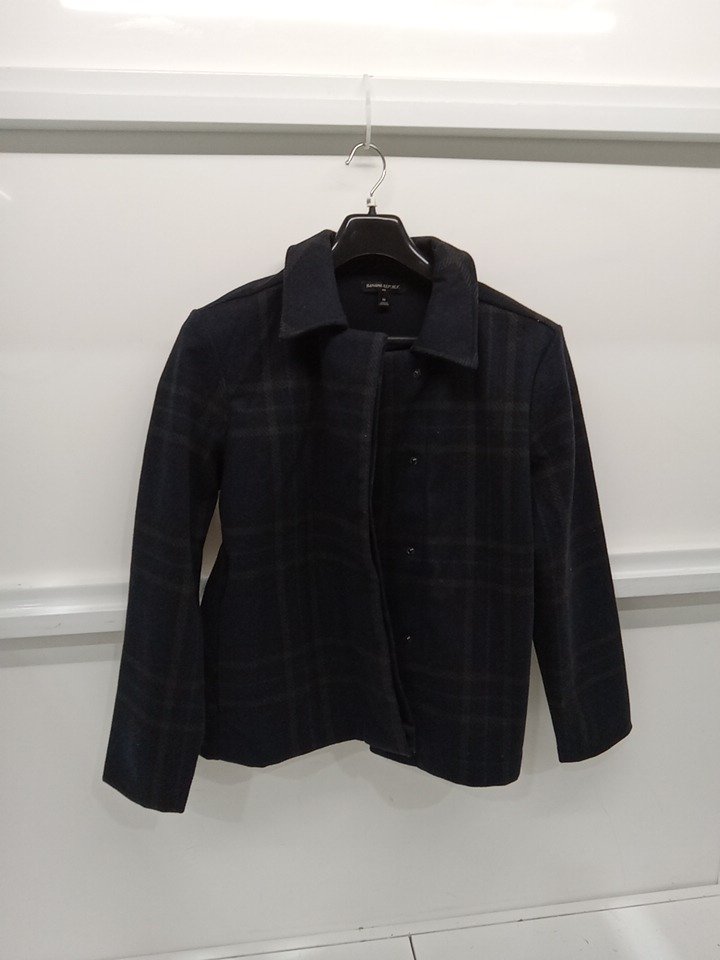 women's banana republic short plaid button up jacket - medium - black/navy