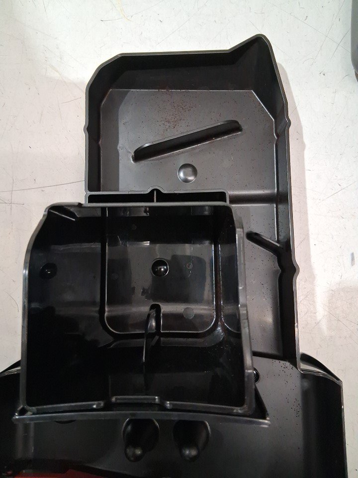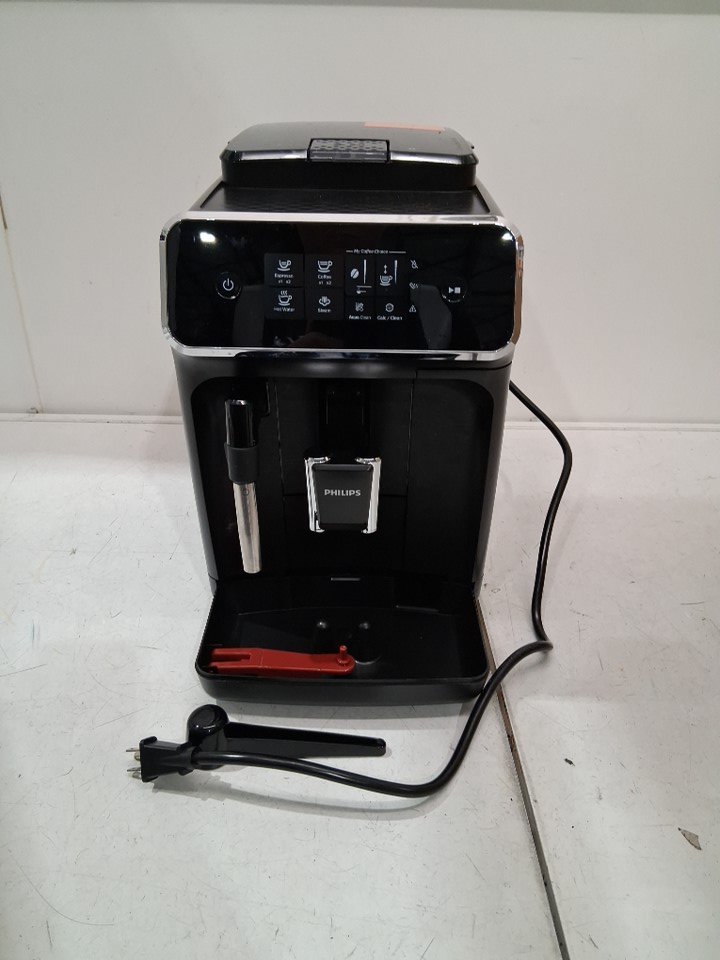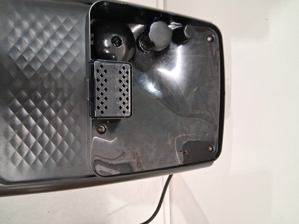 item is missing the drip tray cover item has coffee grounds throughout machine and water residue in reservoir indicating previous light use tested for power