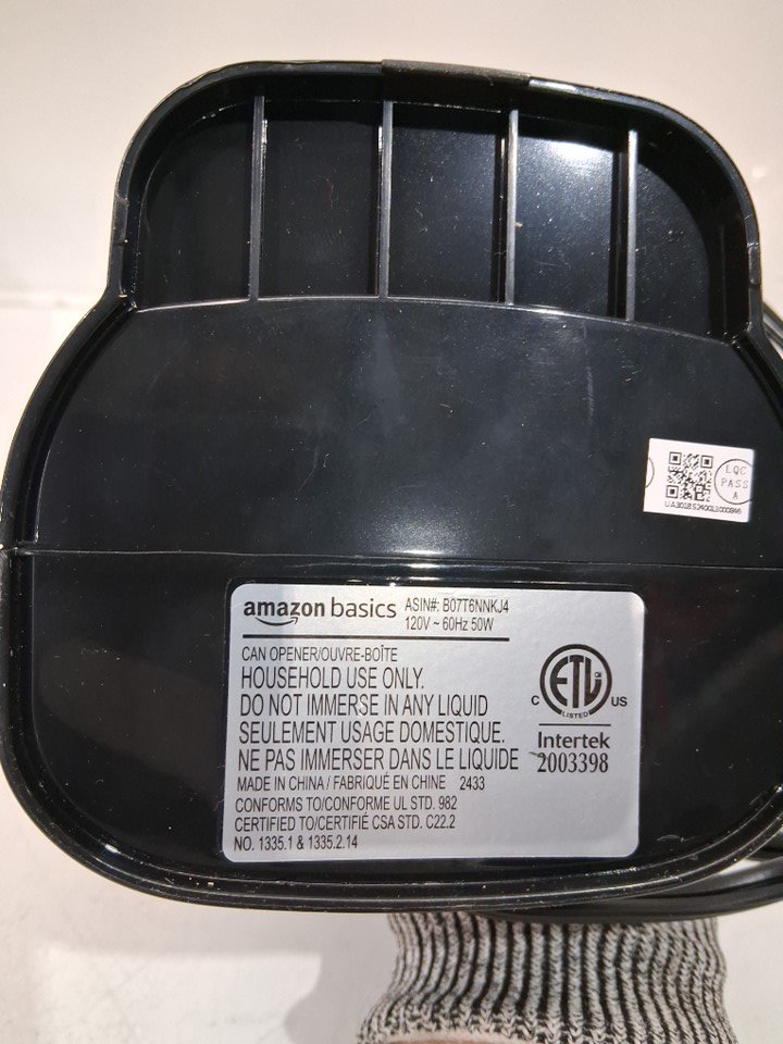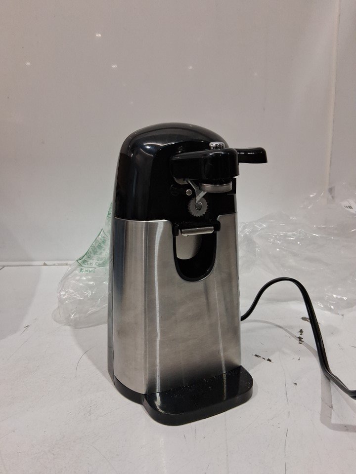 AMAZONBASICS ELECTRIC CAN OPENER WITH BUILT-IN BLADE SHARPENER - BLACK/STAINLESS STEEL (MODEL: B07T6NNKJ4)
