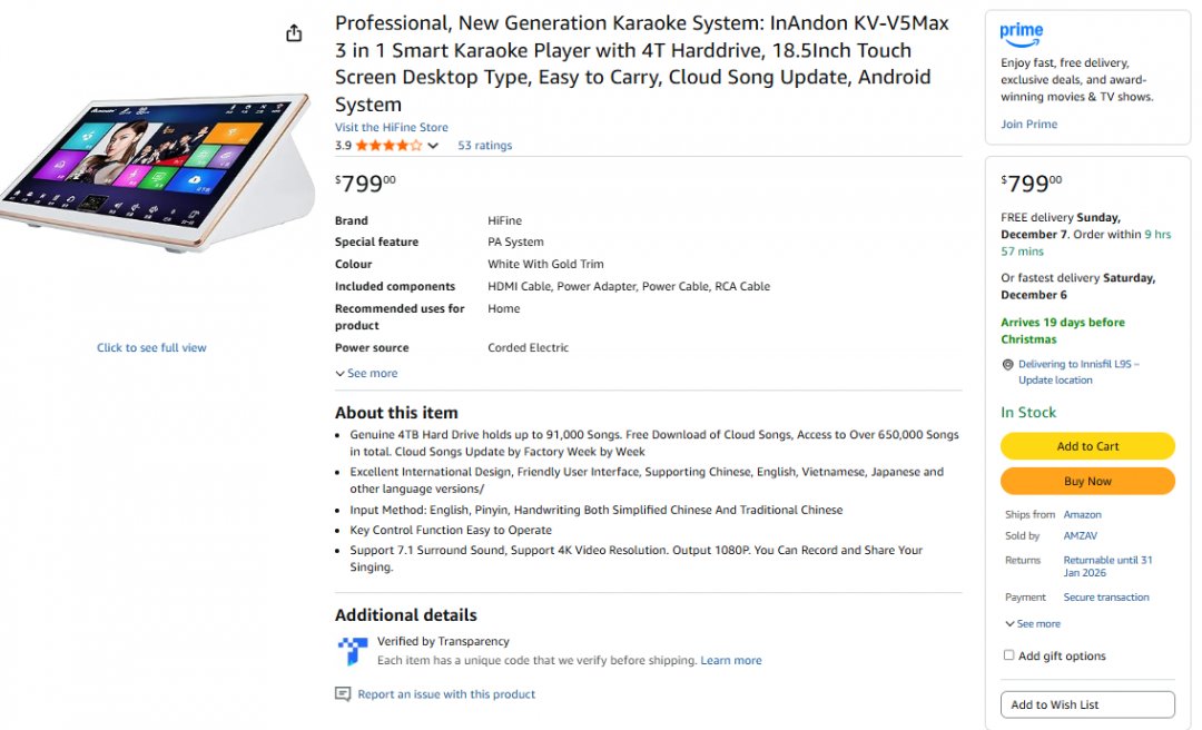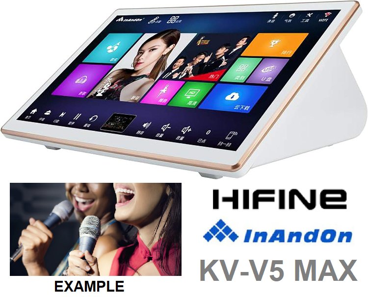 HIFINE INANDON NEW GENERATION KARAOKE SYSTEM - 3-IN-1 KARAOKE PLAYER WITH 4T HARD DRIVE, 18.5" TOUCH SCREEN AND CLOUD SONG UPDATE - ANDROID - WHITE (MODEL: KV-V5 MAX)