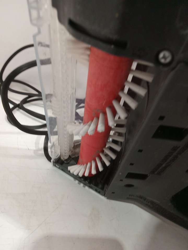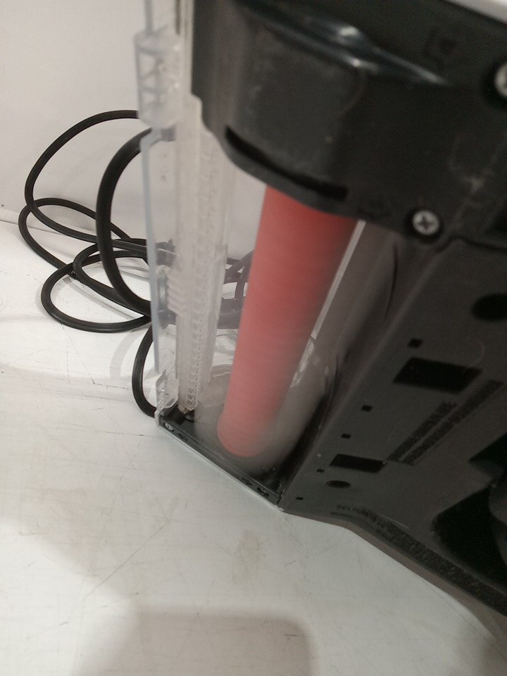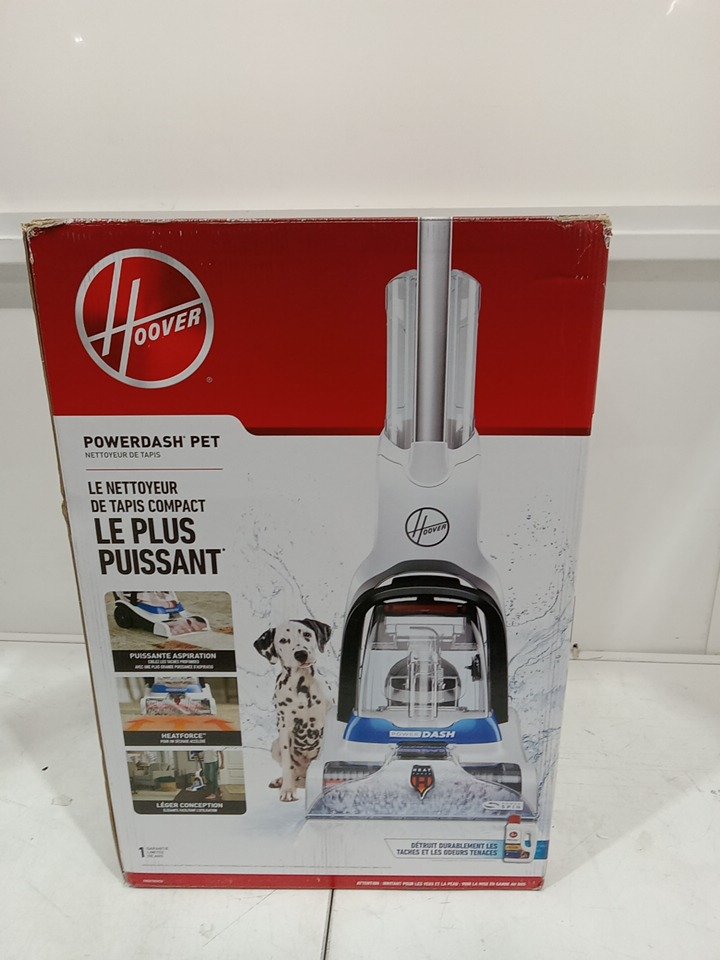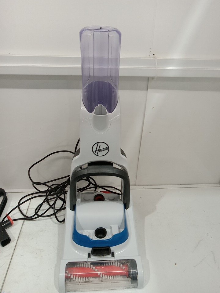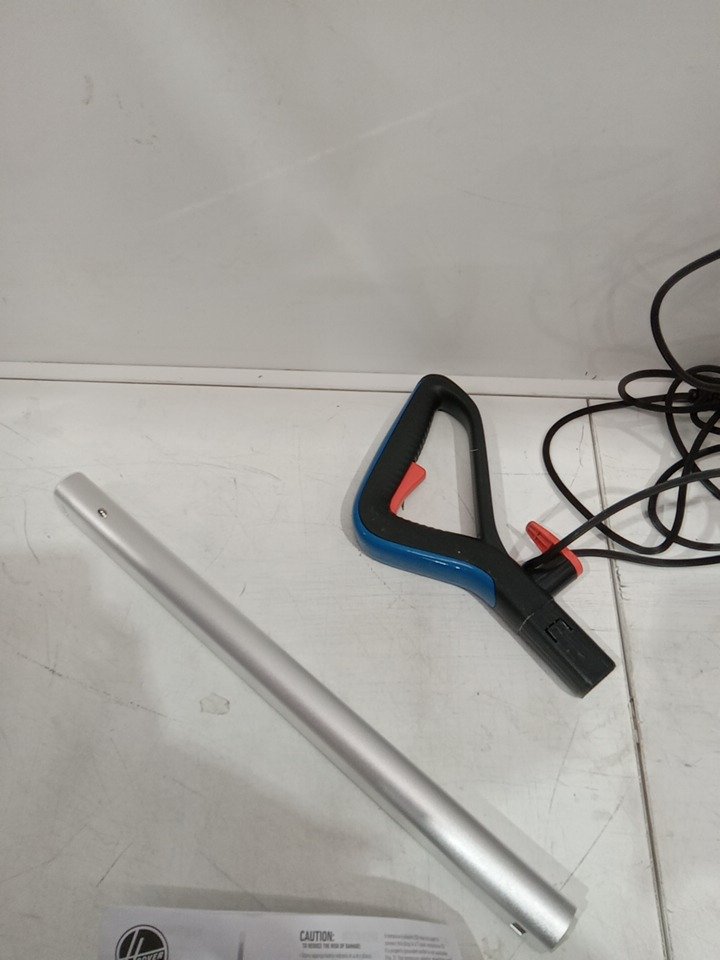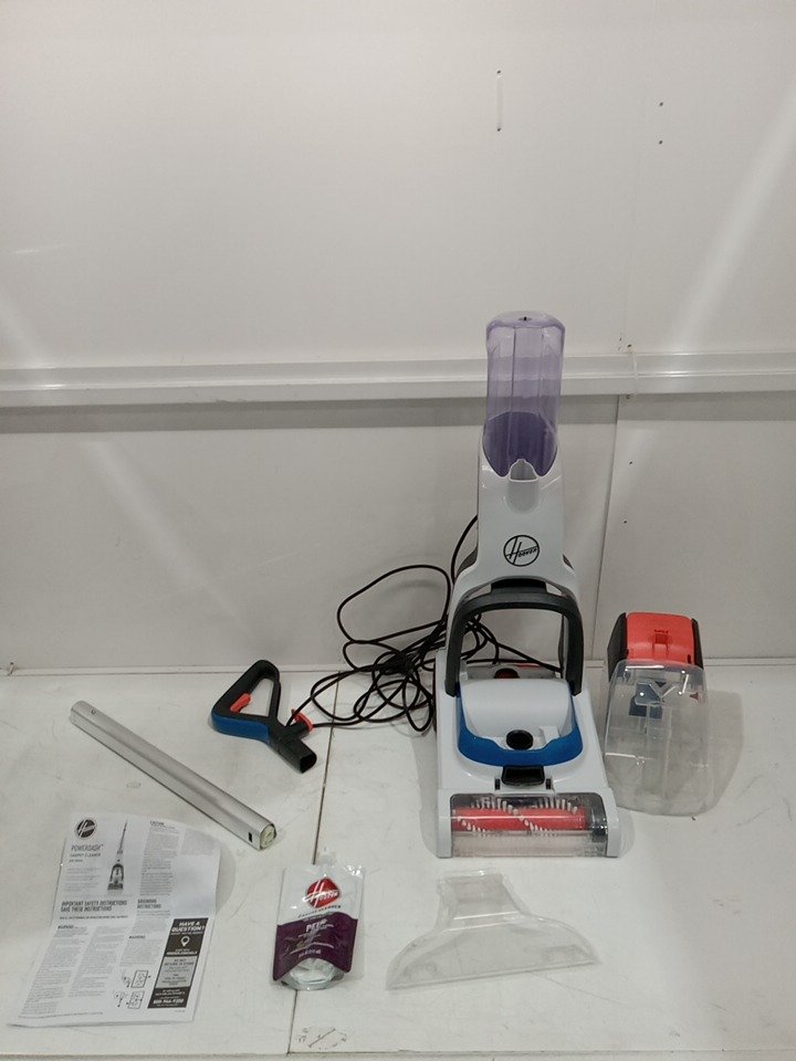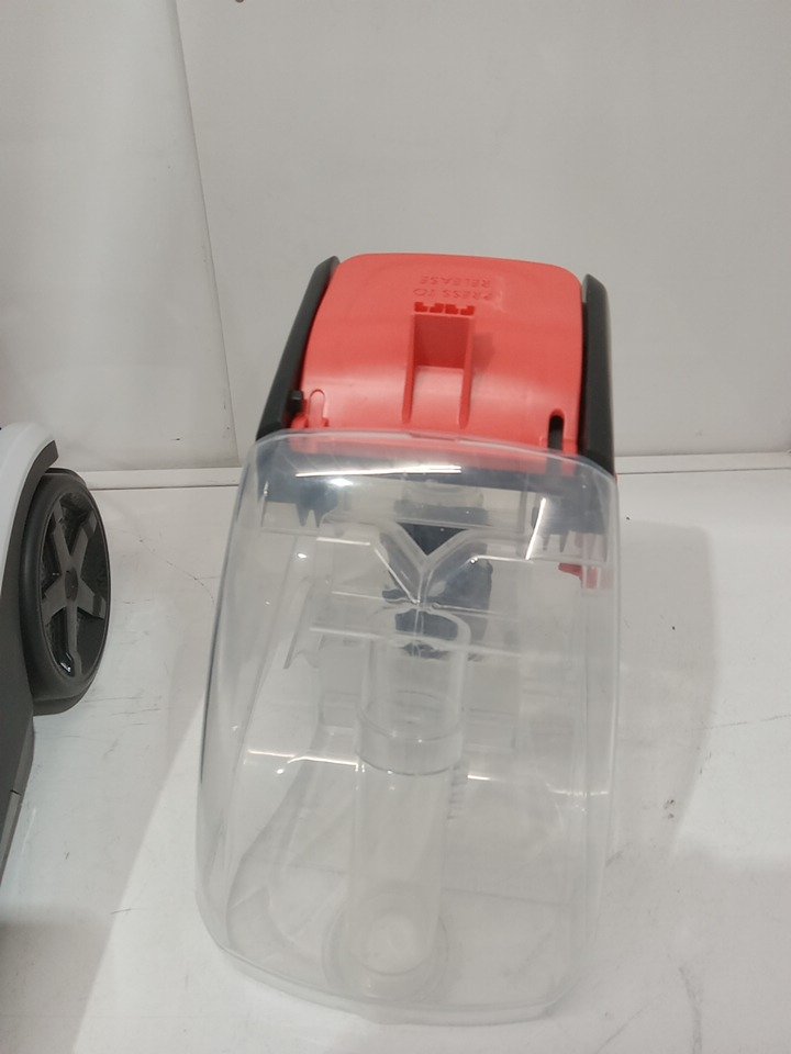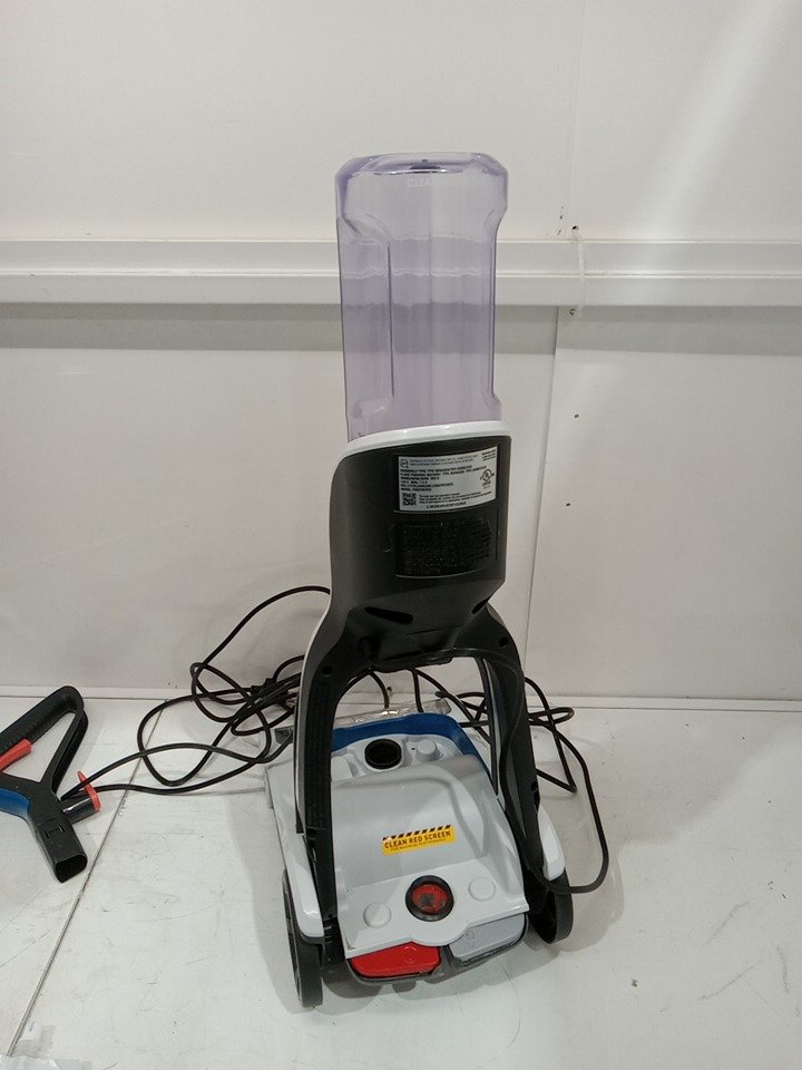 There are water stains on the water tank, there are hair/dirt reside on the main floor brush and scratch marks on the pole and handle due to previous use. Tested for power and motor function only. (Please see photos)