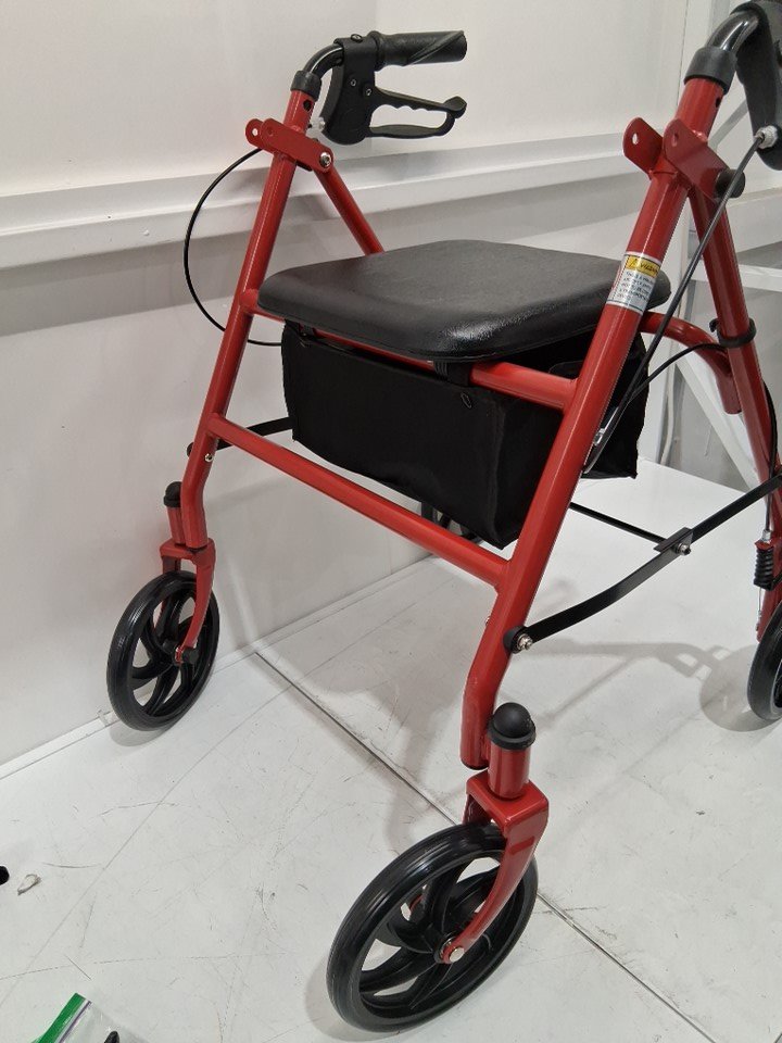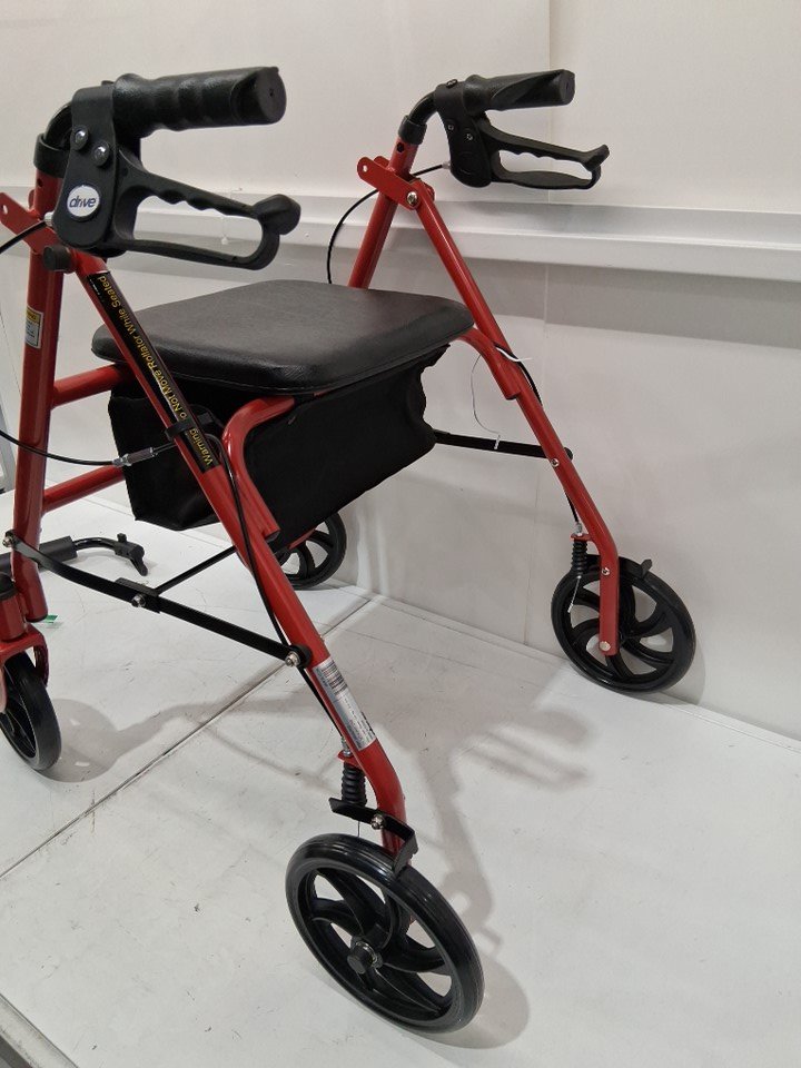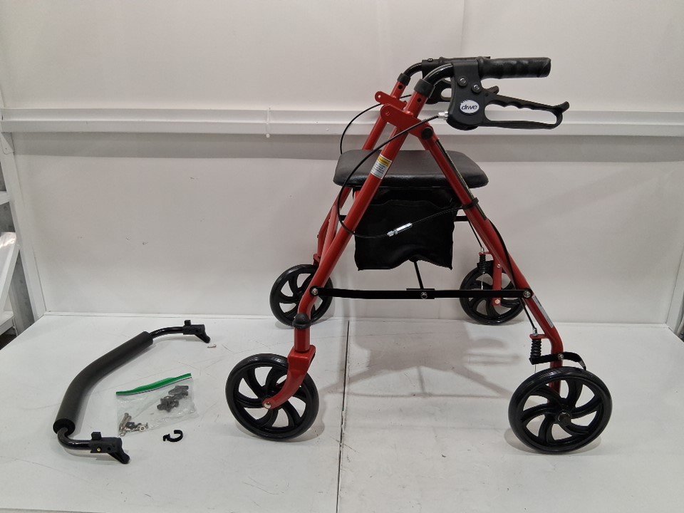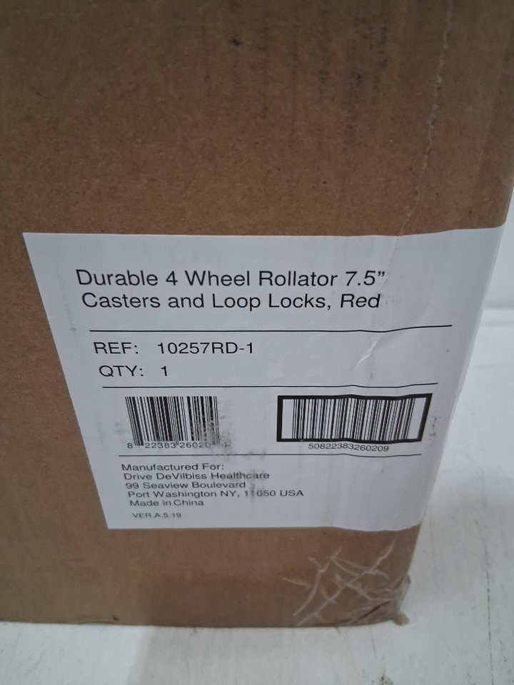 DRIVE MEDICAL 4 WHEEL ROLLATOR WALKER STURDY STEEL FRAME WITH BASKET FOR PERSONAL ITEMS 7.5" CASTER WHEELS IDEAL FOR INDOOR AND OUTDOOR USE - RED (MODEL: 10257RD-1)