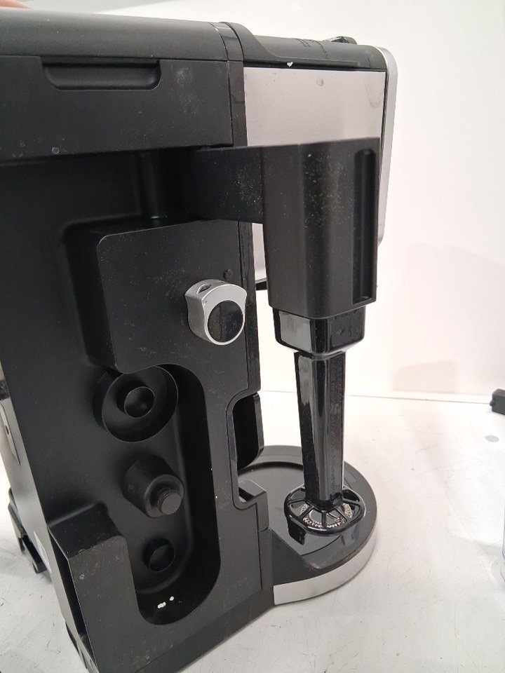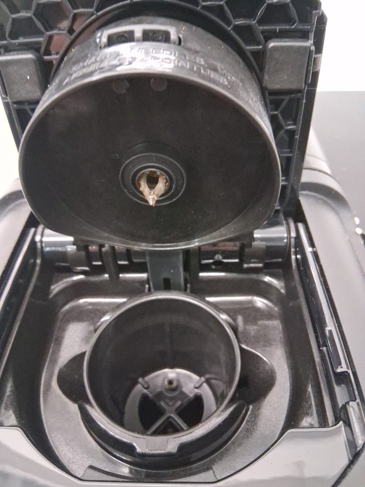 some coffee residue in pod chamber. plastic cracked off on back side of water reservoir stand.
