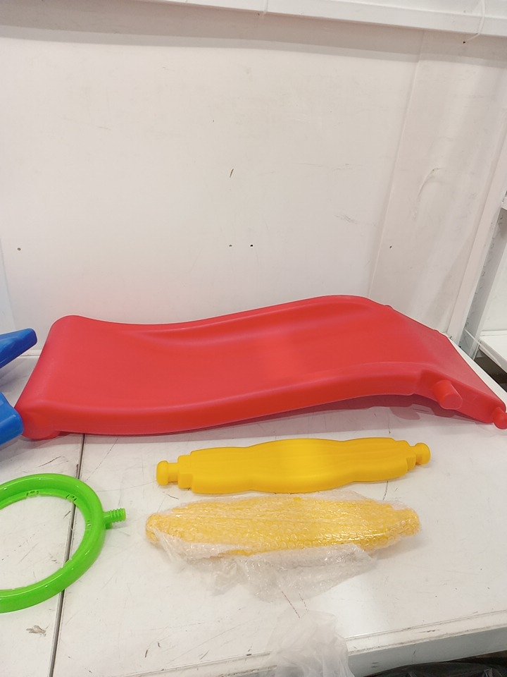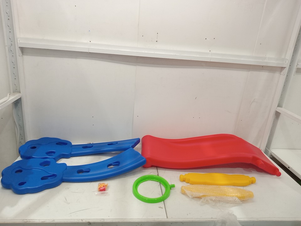 Costway Folding 2-Step Children's Slide with Basketball Hoop - 28" x 42.5" x 13" - RED/BLUE - ( MODEL: TY326361)