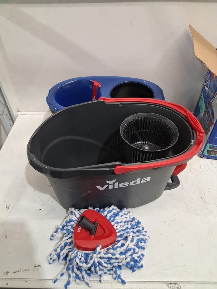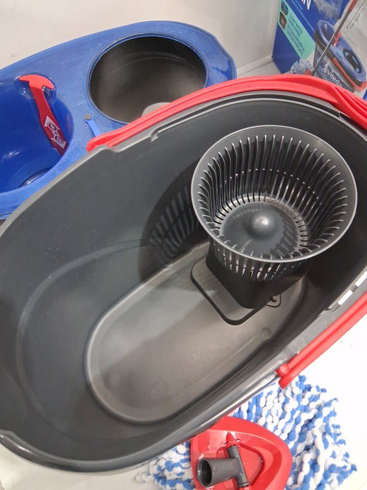 Vileda Easywring Rinse Clean 2 Tank Spin Mop and Bucket System - 22"-36"/36"-48" handle - Blue/Red/Grey
