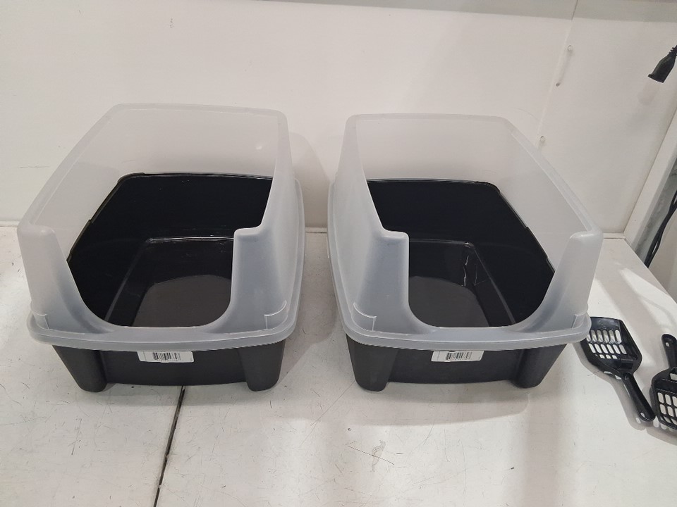 2PK IRIS Open Top Cat Litter Box Kit with Shield - 15" x 19" - BLACK/CLEAR - (MODEL: CLH-12)