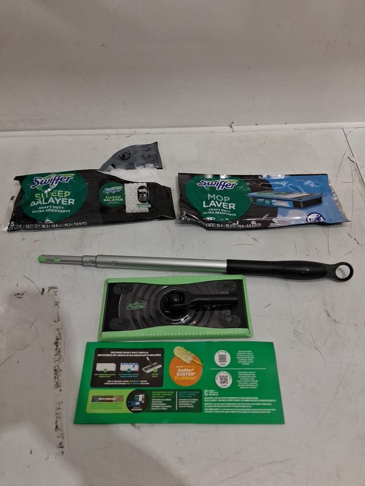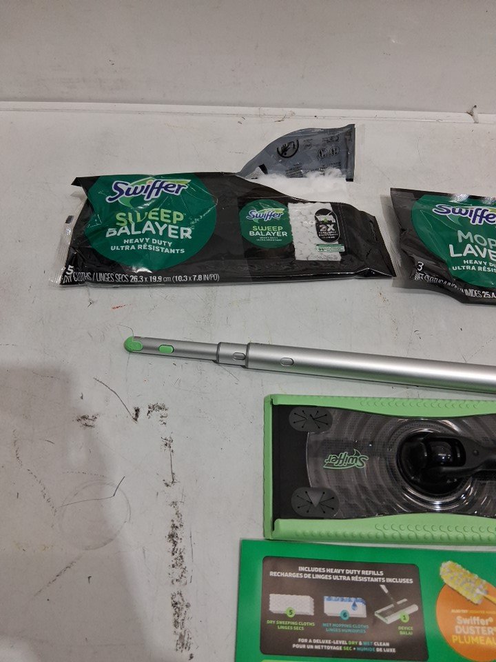 Swiffer 2-in-1 Sweep and Mop Deluxe Multi surface Mopping and Sweeping Kit with 6 replacement pads - green/black