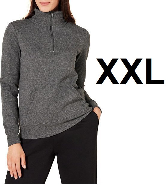 WOMENS AMAZON ESSENTIALS FRENCH TERRY QUARTER ZIP SWEATER - XXL - CHARCOAL GREY HEATHER (MODEL: AE18111988)