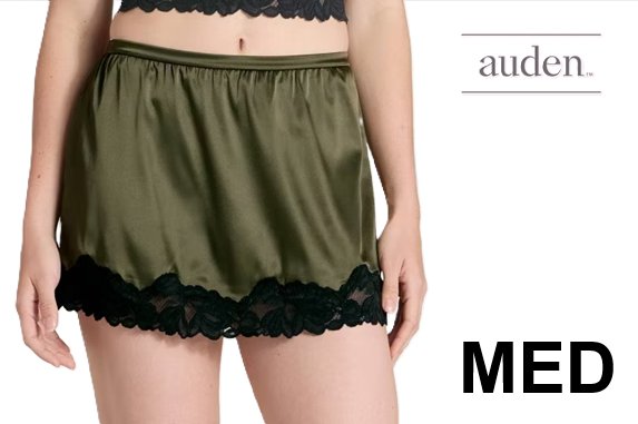 WOMENS AUDEN Satin & Lace Lingerie Skirt - MEDIUM - MOSS GREEN/BLACK