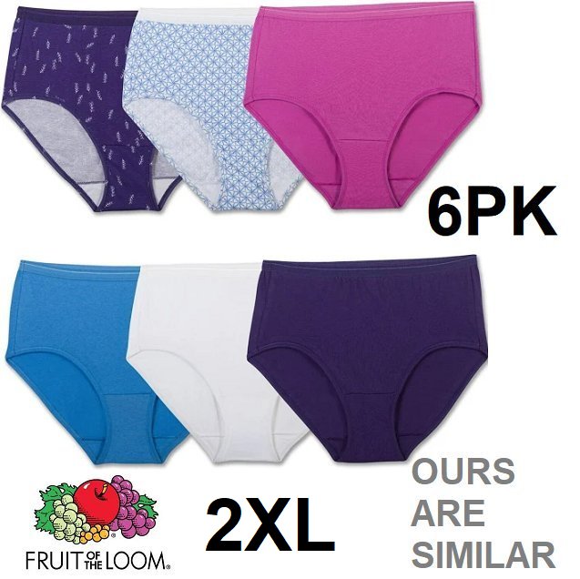 6PK WOMEN'S FRUIT OF THE BLOOM cotton BRIEFS - size 10 (2xl) - MULTICOLOR
