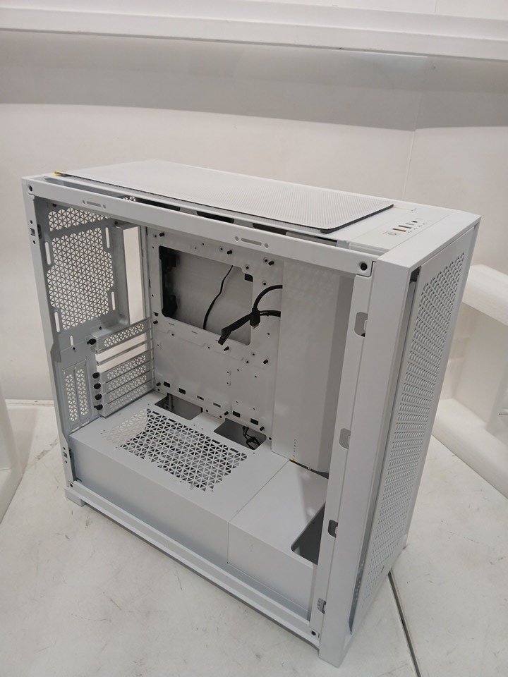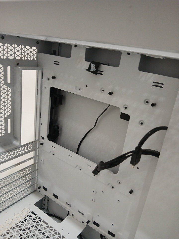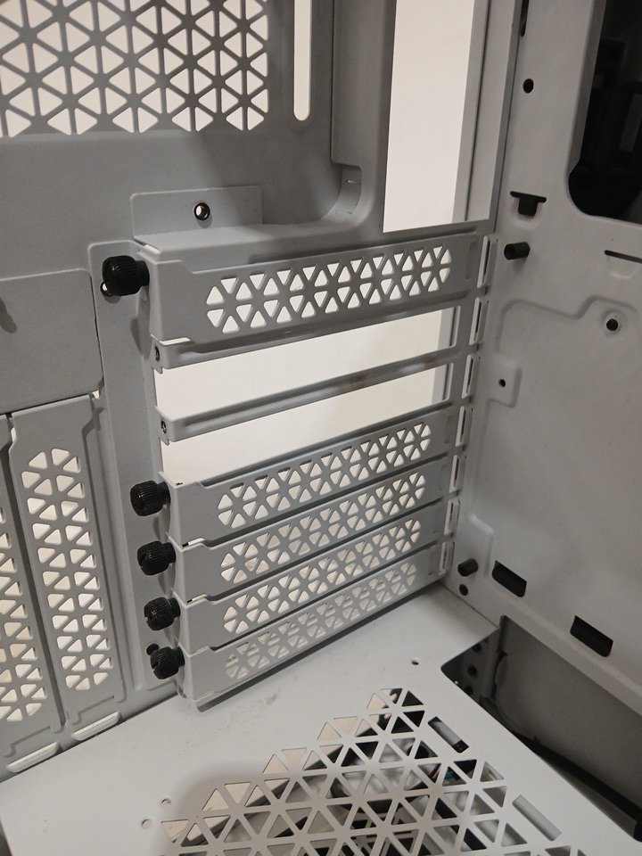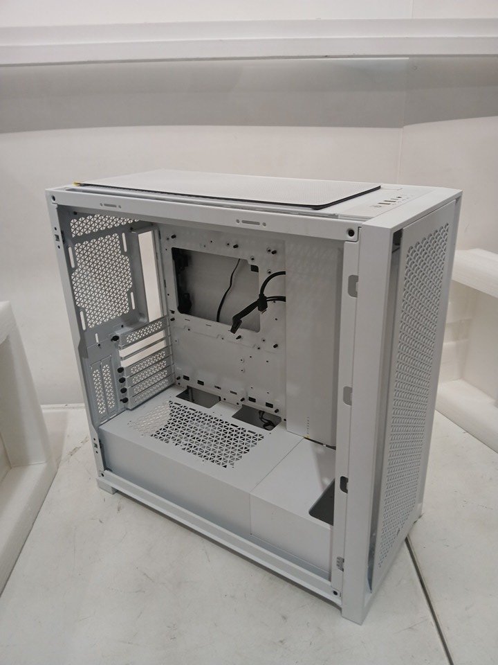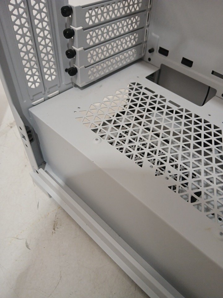 Please note the glass panel is removed from the case, and the fans are not present. Two of the PCI slot covers are missing as well. There is a presence of minor scuffs on connecting points, indicating prior installation. Addition PC building hardware may be required such as stand-off screws for assembly. See photos.