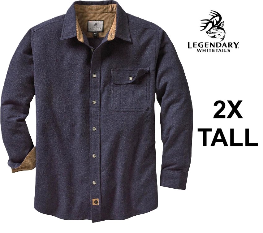 MENS LEGENDARY WHITETAILS BUCK CAMP FLANNEL SHIRT - 2XL- tall -blue-(style:‎6464)