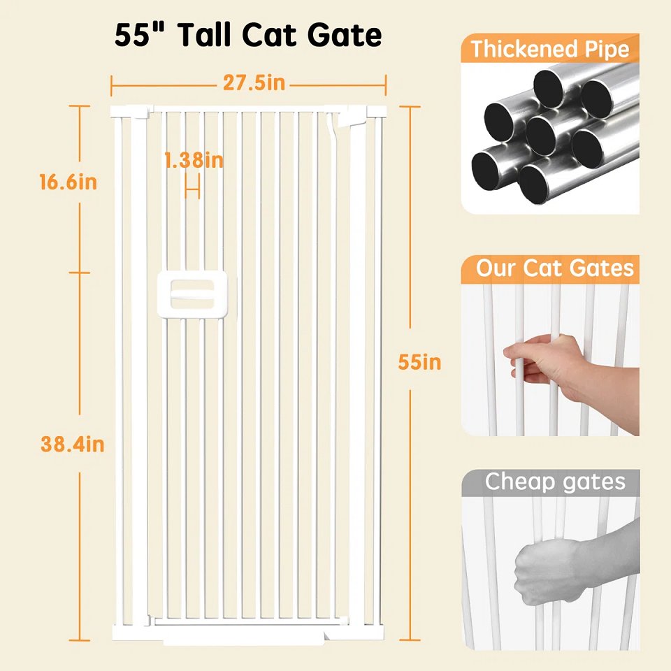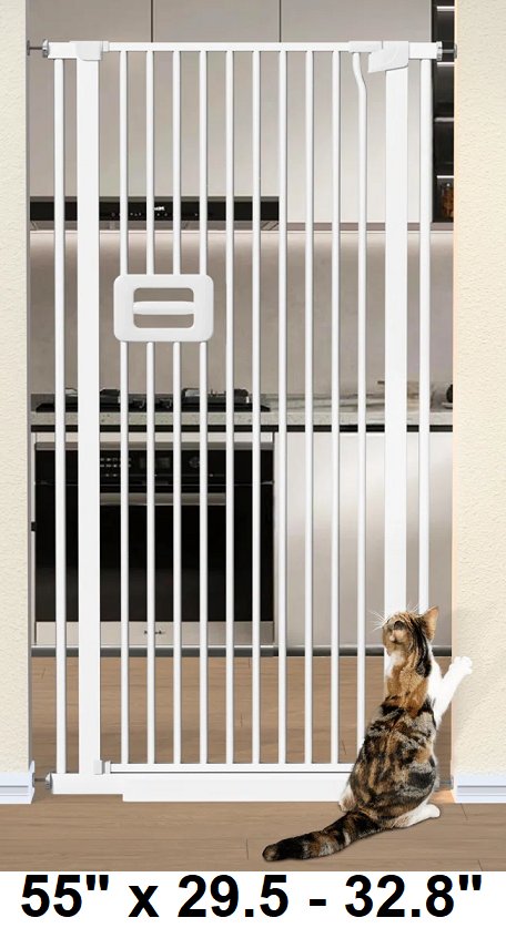Mestuel Extra Tall Pet Cat Gate - 55" x 29.5 - 32.8" - White (Model: CG-151)
