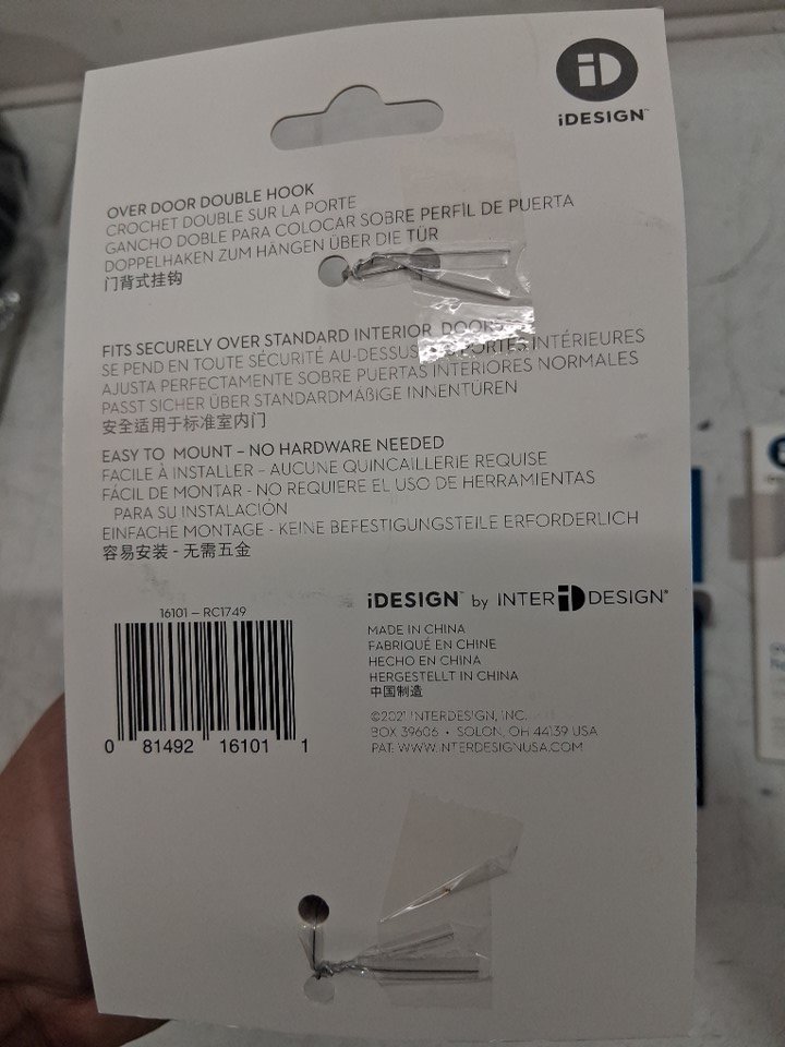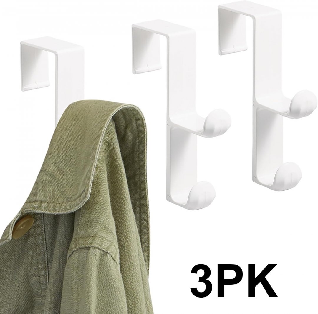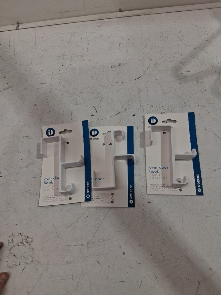 3pk iDesign Over The Door double Organizer Hook - 1" x 4.5" x 3"- white