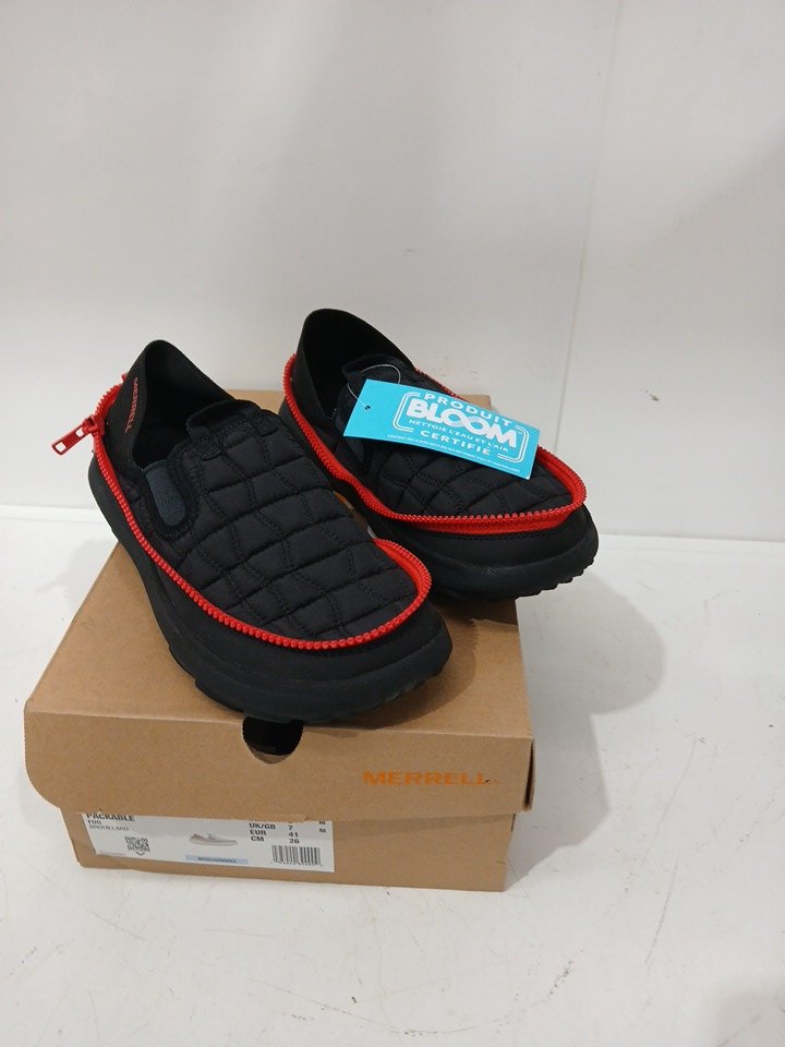 MENS MERRELL hut moc 2.0 slip on shoe - size 7 - black/red (MODEL: J006713)
