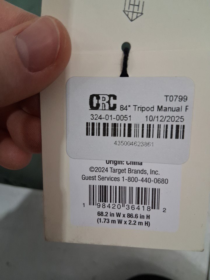hearth & hand with magnolia Manual Projector Screen on tripod with carrying bag - 84" tripod - 68.2" x 86.6" - green (MODEL: hw-10537)