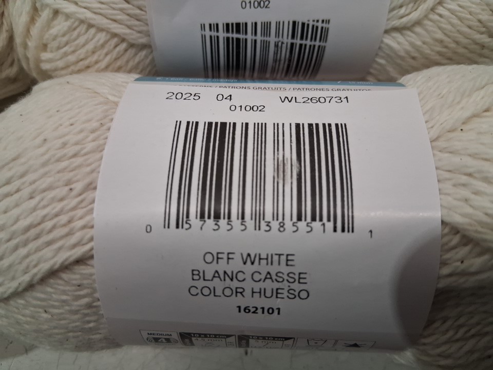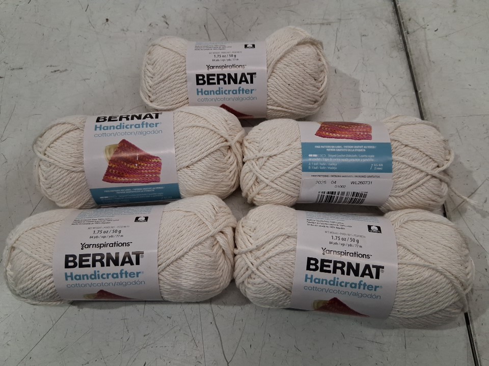 5pk bernat Handicrafter Cotton Yarn - 1.75oz/50g - 84 yards/77m - off white (model: ‎16210101002)