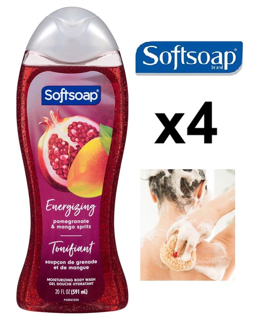 4 softsoap energizing moisturizing body wash - pomegranate & mango spritz - 591ml/each