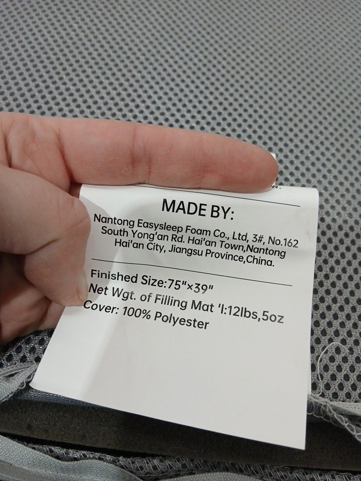 quadfold memory foam Mattress with washable cover - 75" x 39" - grey
