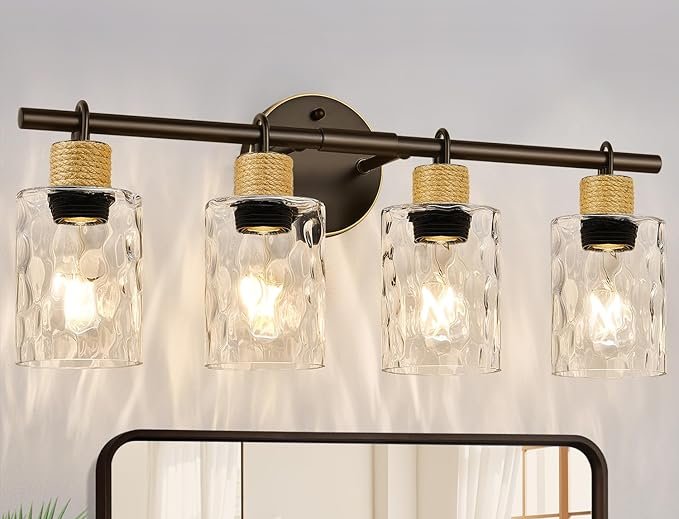 mokatng costal bathroom vanity 4-light fixture - brown gold/clear (model: YX-057)
