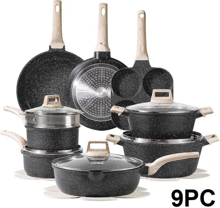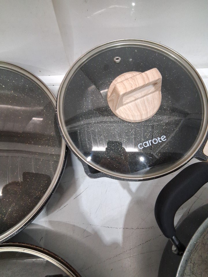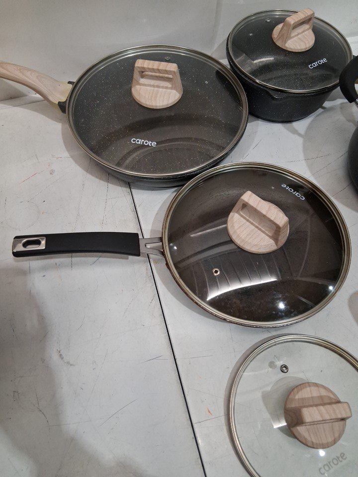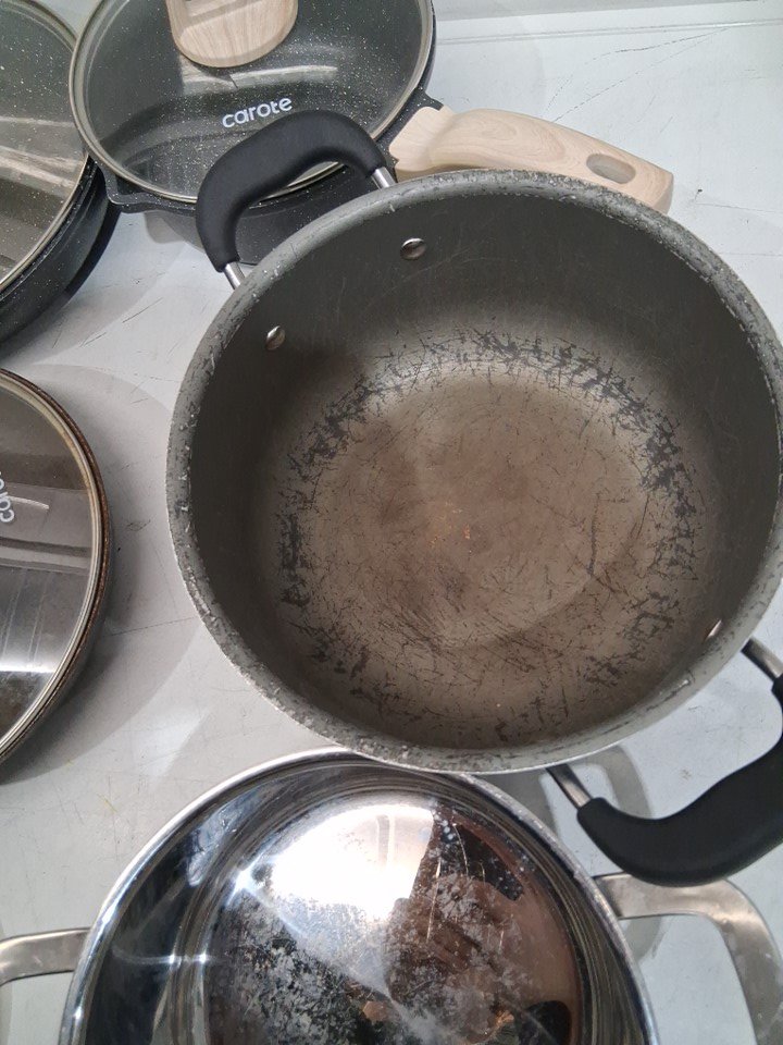 pots are burnt/dirty, missing full set. MIXED SET, NOT ALL POTS ARE "carote"
