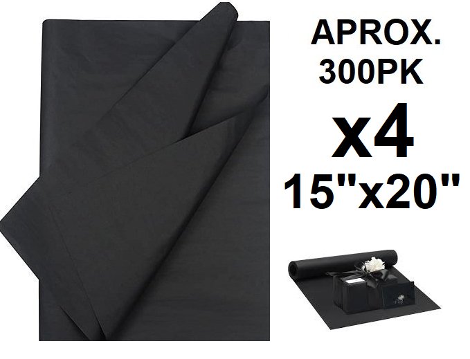 x4 (~300pk) THIN TISSUE PAPER sheets FOR ARTS & CRAFTS/ GIFT WRAPPING - 15" x 20"/sheet - black