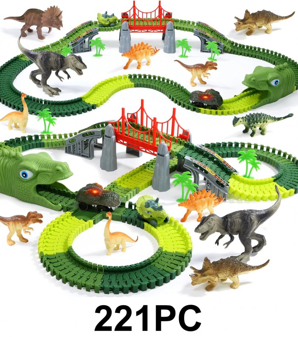 221pc dinosaur adventure track set - ages 3+ - multicolor (model: p916)
