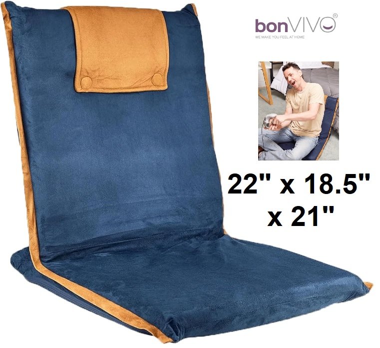 bonvivo easy iii Padded Folding Floor Chair with Back Support - 22" x 18.5" x 21" - blue/beige
