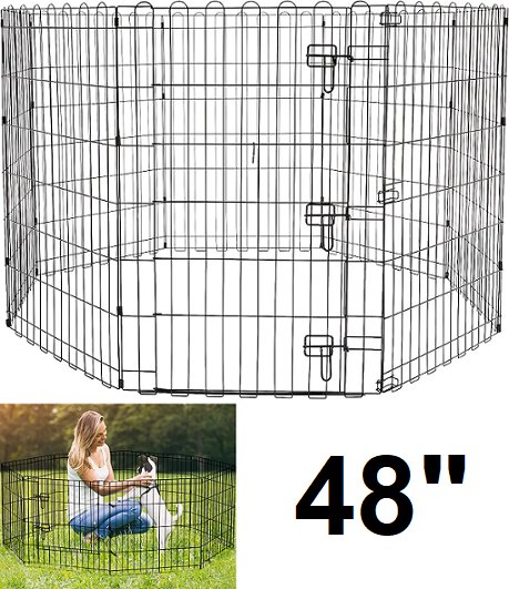 AMAZONBASICS FOLDABLE METAL PET EXERCISE AND PLAYPEN WITH DOOR - 48" - BLACK