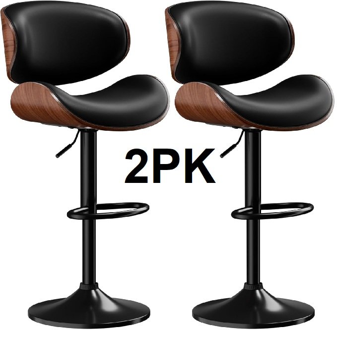 2pk aowos Adjustable Leather Bar Swivel Stools with footrest - 24" - 33"/330lb max - rustic brown/black (model:0121)