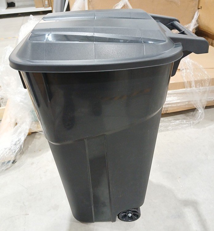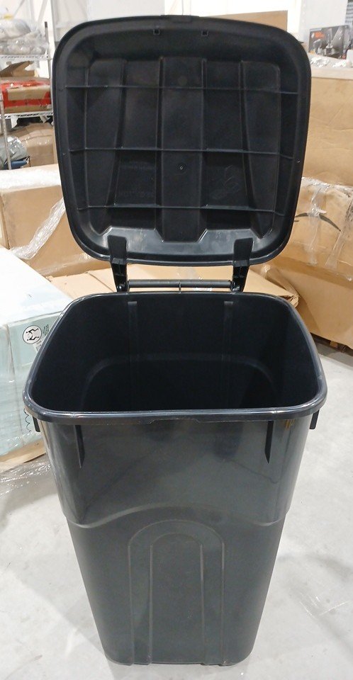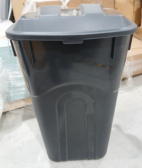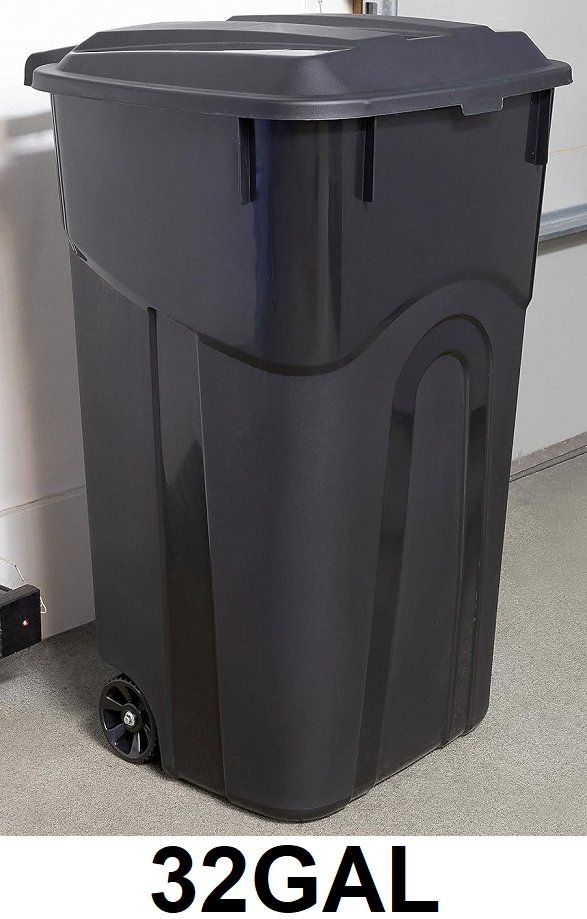 United Solutions Wheeled Outdoor Garbage Can with Attached Snap Lock Lid and Handles - 32Gal - Black