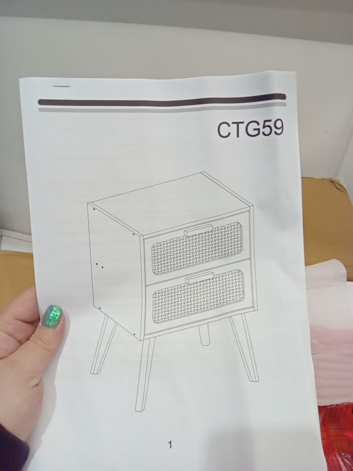 YAUKOMEL Rattan Nightstand with 2 Hand Made Rattan Decorated Drawers - White (model:CTG59W)