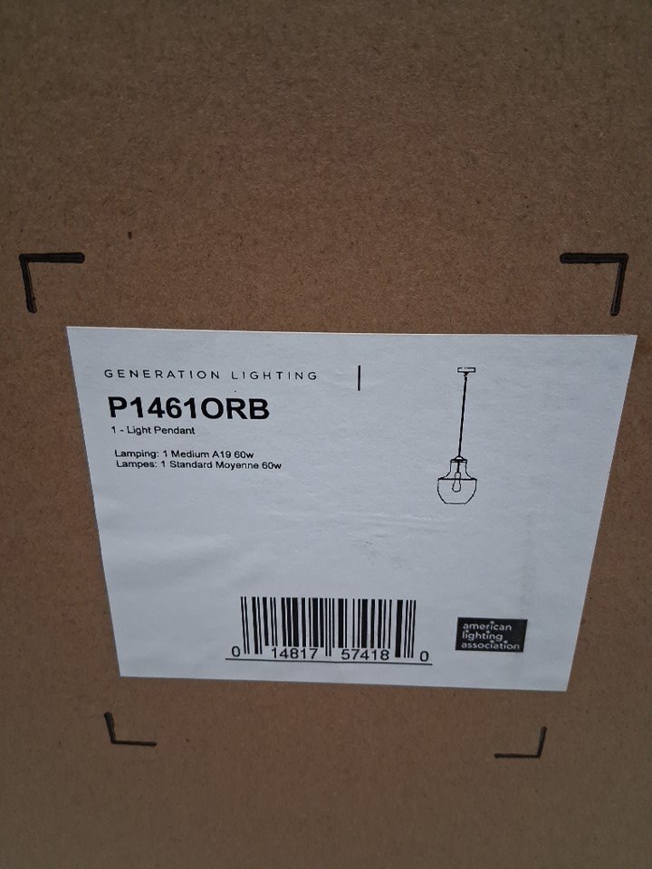 GENERATION LIGHTING BAYLOR 1-LIGHT HANGING CEILING LIGHTING FIXTURE, 17" LONG - HARDWIRE - OIL RUBBED BRONZE - (MODEL: P1461ORB)