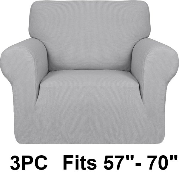 3PC MAXIJIN SUPER STRETCHY Love Seat chair slipCOVER and 2 Cushion Covers - FITS 57"-70" Loveseats - light GREY