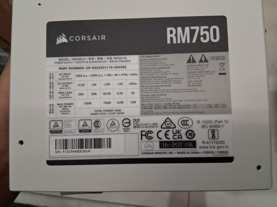 Corsair RM750 ATX Power Supply unit PSU - 750w, 80 Plus Gold certified, Fully Modular - WHITE (model: rps0119)