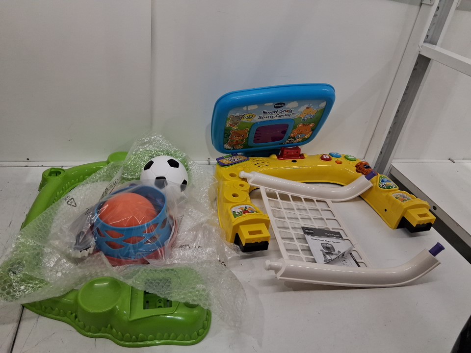 VTECH ELECTRONIC SMART SHOTS SPORTS CENTER 2-IN-1 KIDS BASKETBALL HOOP/SOCCER NET - FRENCH (MODEL: 80-156301)