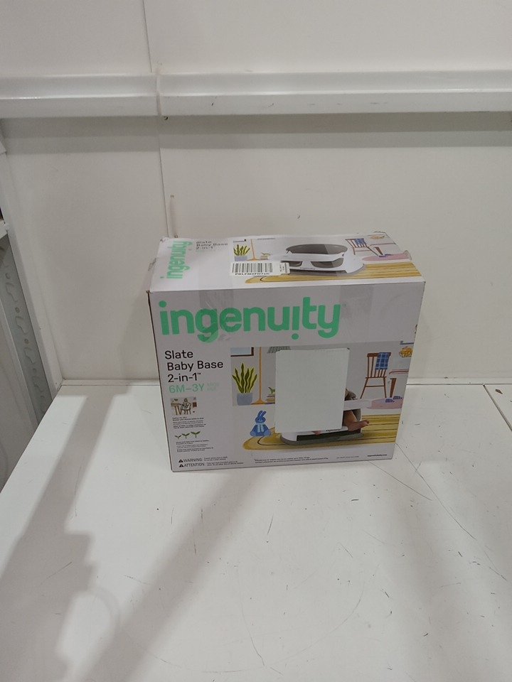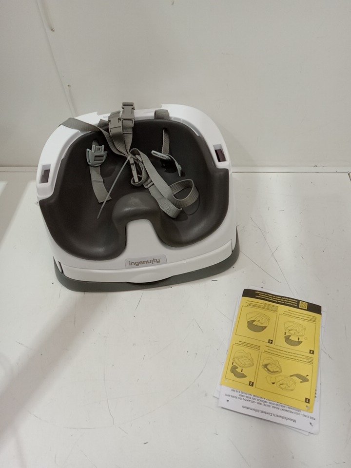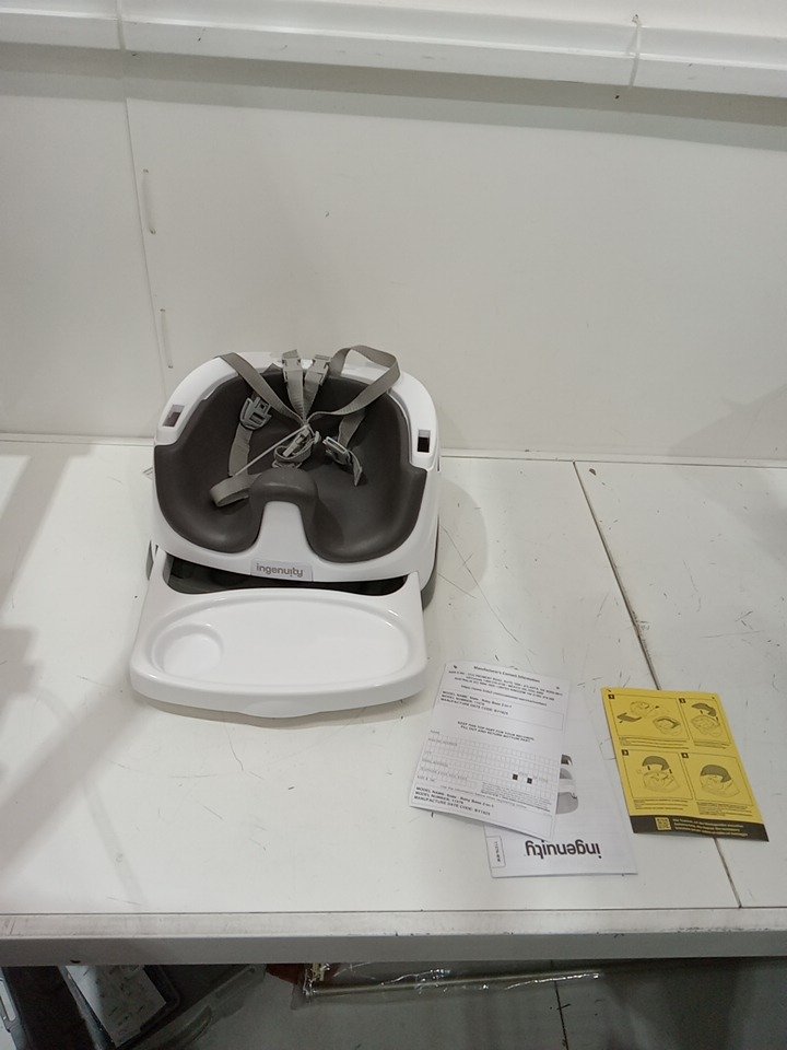 INGENUITY BABY BASE 2-IN-1 BOOSTER SEAT WITH FOOD & DRINK TRAY - 50LBS CAPACITY - WHITE/SLATE GREY (MODEL: 11576)
