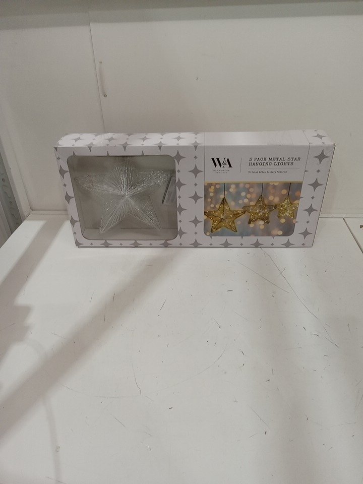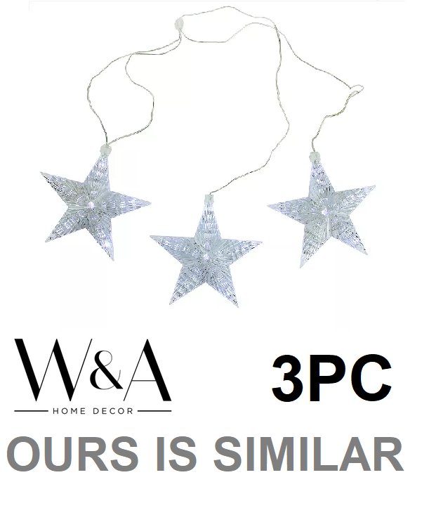3pc w & a home decor metal star hanging lights - battery powered - 75 leds - 9.5", 7", 4,7" - silver (model: wh-ml279-199)