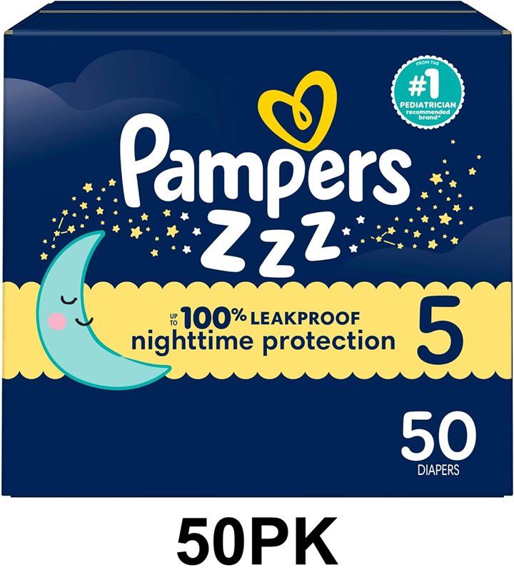 50PK Pampers ZZZ Overnight Diapers - Size: 5 (27+ LB)
