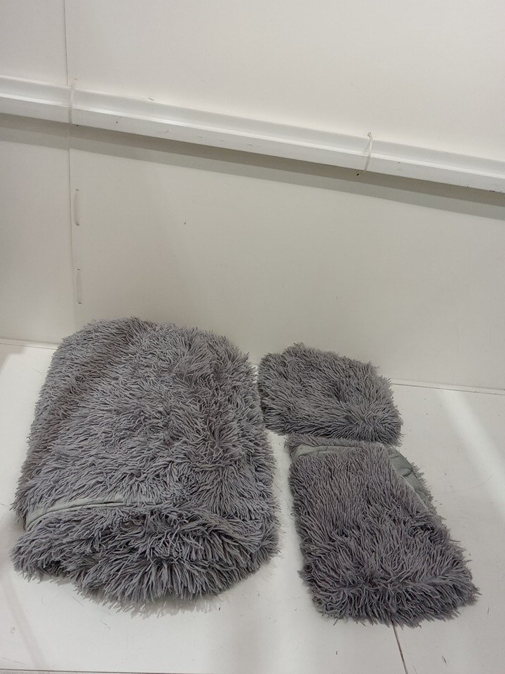 3PC FUZZY FAUX FUR DUVET COVER with 2 PILLOW CASEs - queen - GREY