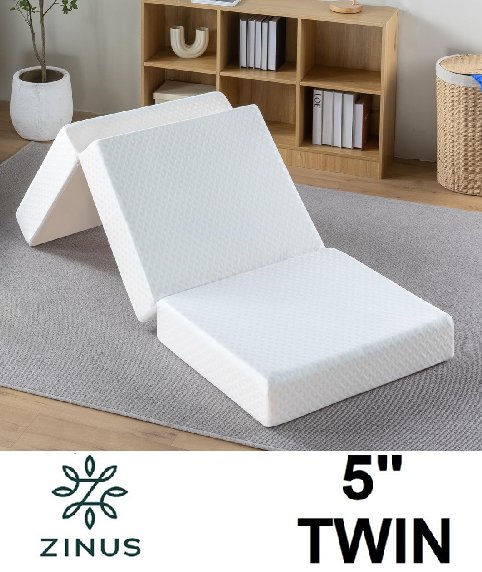 ZINUS GEL MEMORY FOAM 5" TRI-FOLD COMFORT PORTABLE FOLDING MATTRESS OR FLOOR MAT - TWIN - WHITE(MODEL: AZ-TRI-5T)