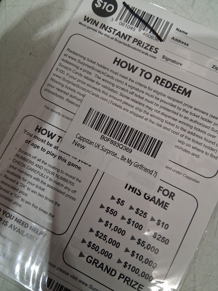 10 Cappstan Scratch to Reveal Tickets Will You be My Girlfriend - PURPLE /PINK