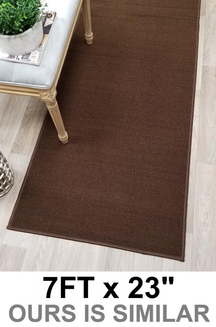 Solid Plain Rubber Runner Rug - 7FT x 23" - Brown