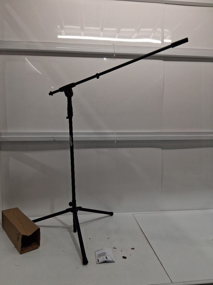 AMAZONBASICS FOLDING TRIPOD MICROPHONE STAND WITH BOOM ARM - 3FT TO 7FT - BLACK (MODEL: TMS130)
