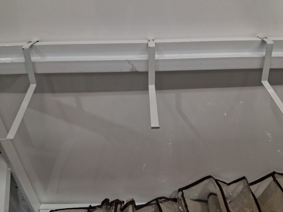 this has been previously used. you can see the rubbing on the arms from previous door jam.