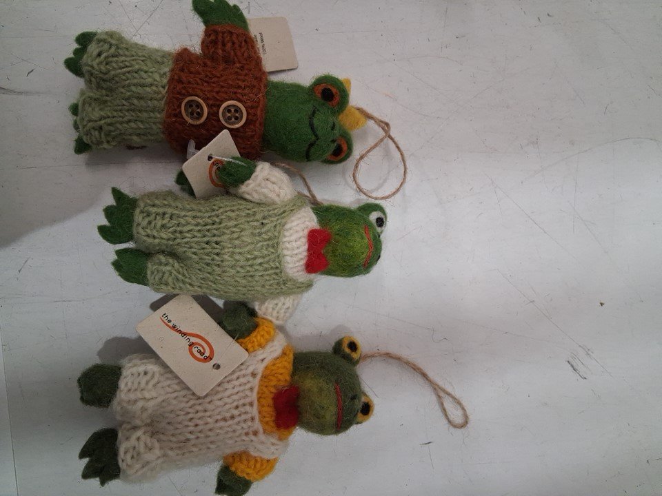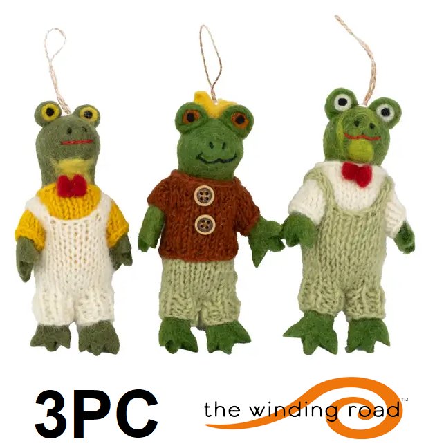 3PC THE WINDING ROAD HANDMADE FELT FROG ORNAMENTS - GREEN
