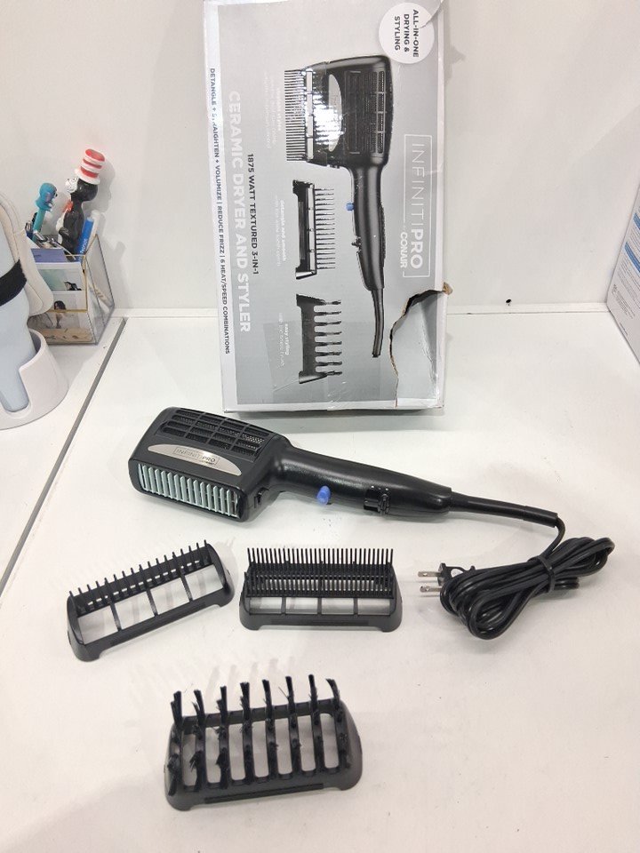InfinitiPro by Conair 3-in-1 Ceramic Texture Dryer and Styler Brush - Black (Model: SD9C)