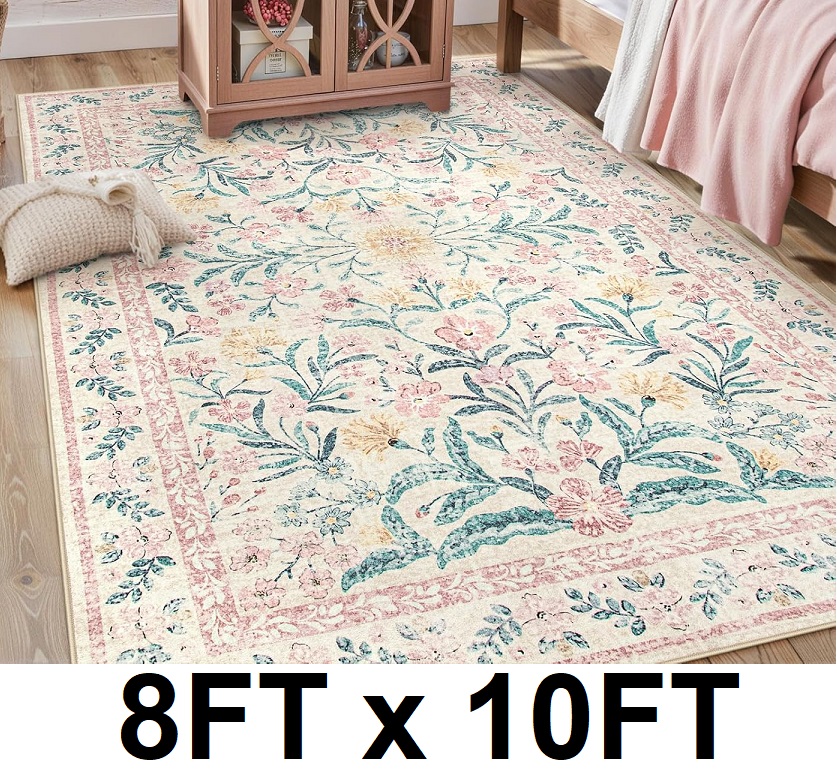 Lahome Boho Washable Area Rug - 8FT x 10FT - pink floral
